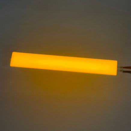 ParaLight diffused white case 6-3/16" x 0.88" x 0.20" thick (excluding hookup tab) enclosed backlight glows bright yellow when 5VDC @ 650mA is applied. Has a large quantity of discrete yellow LEDs enclosed to achieve the beautiful "even" glow!