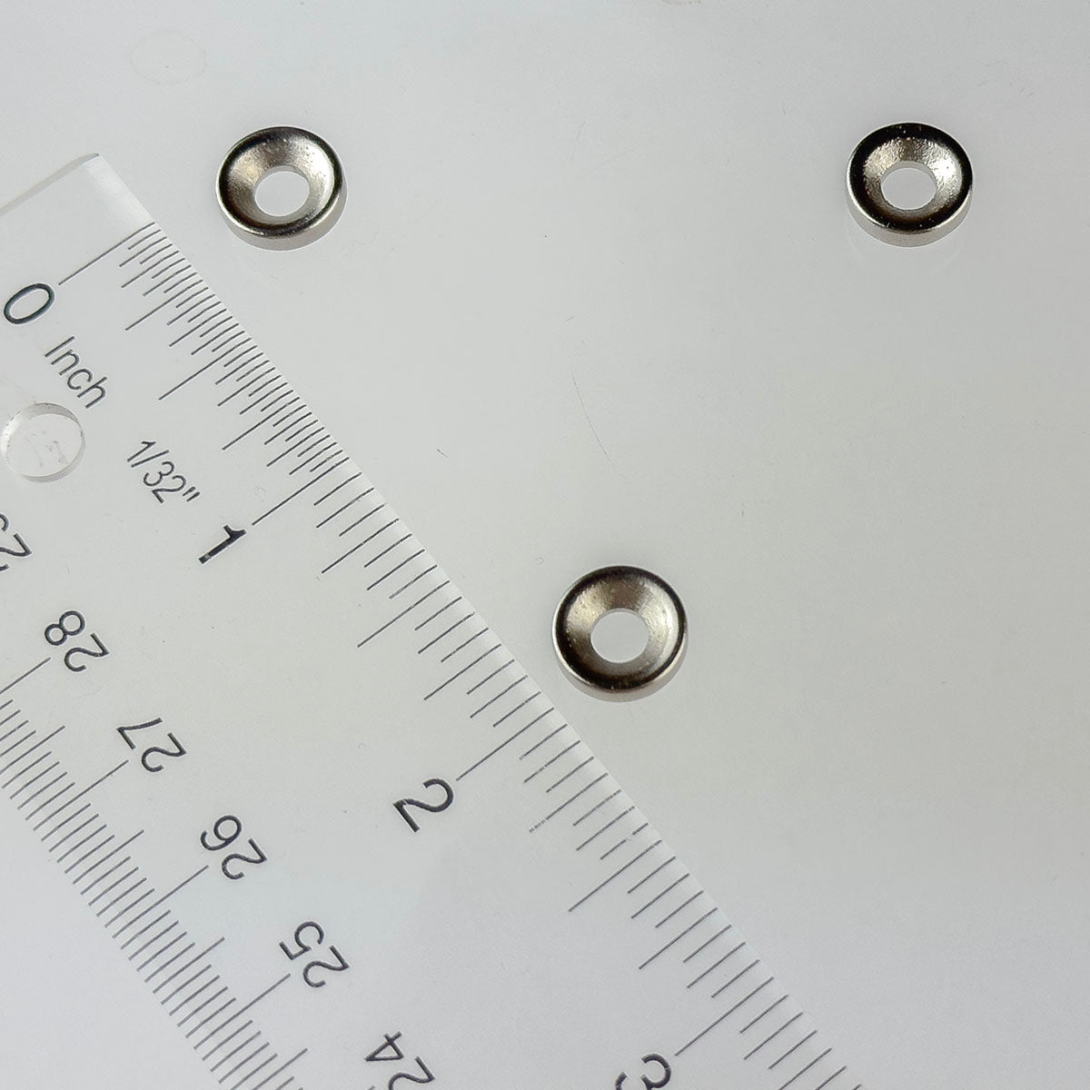 Neodymium Rare Earth Super Magnet is 10mm x 3mm (thick). Has 3.5mm Countersunk hole. Great for hobby projects, magnetic levitation displays, holding papers, etc. Nickel plated. Sold in a package of 3.
