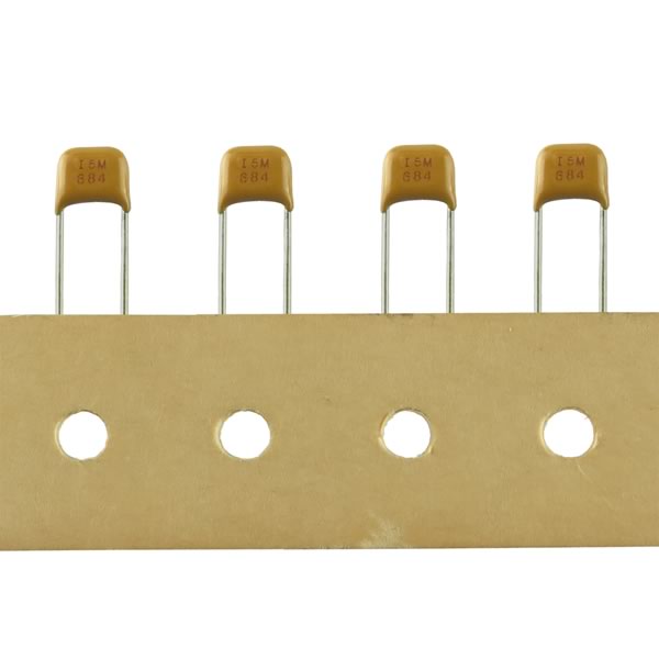 Miniature epoxy coated 0.68uf (684) 50V mono capacitor is only 0.233" wide x 0.18" tall x 0.1" thick. Sold in a package of 10 on tape and reel.