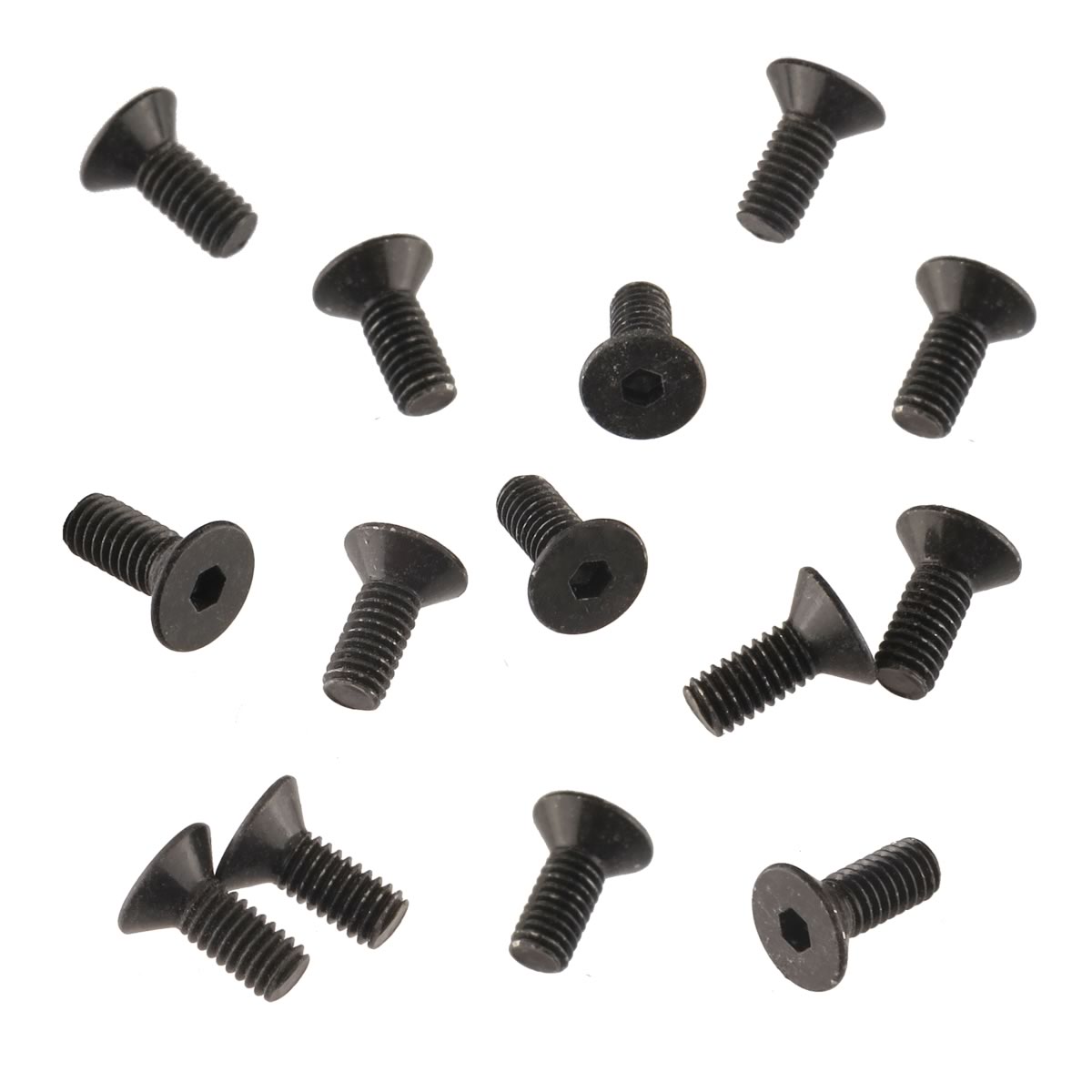 Black oxide stainless steel M4-0.7 x 10mm flat head Allen socket drive screws. Head diameter is about 7.85mm and head height is about 2.65mm. Use 2.5mm Allen key to attach. Sold in a package of 25.