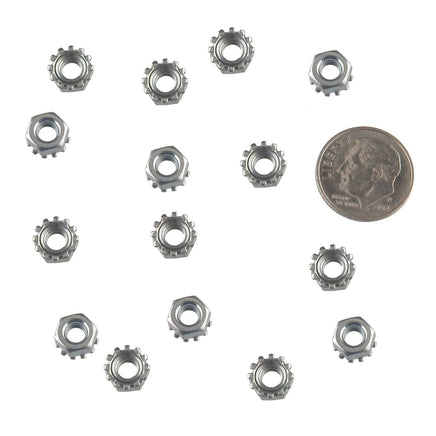 Zinc plated steel M4-0.7 KEPS Locknut features free spinning external tooth lockwasher. Hex width across flats 8.5mm height 4mm. Sold in a package of 25.