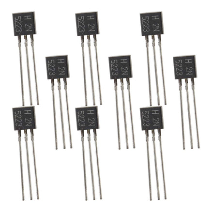 General purpose amplifier and oscillator transistor type 2N5223 is a TO-92 case silicon NPN type rated 25V, 0.1Amp, and 625mW. Sold in a package of 10.