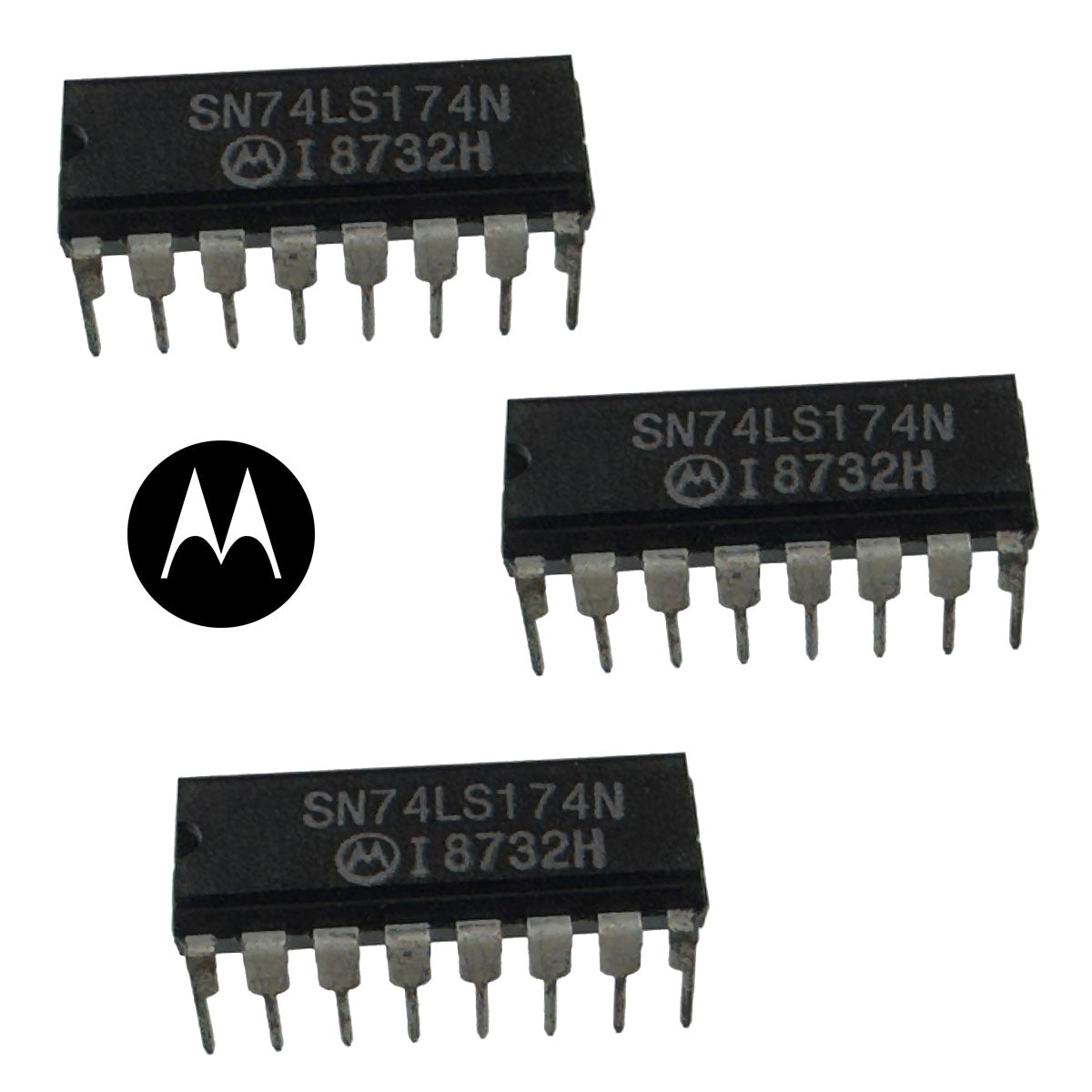 Motorola SN74LS174N Hex D Flip-Flop in a thru-hole 16 pin Dip. Original Motorola Part - New! Sold in a package of 3.