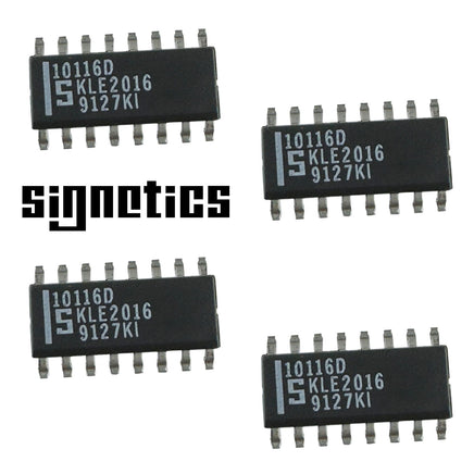 Signetics 10116D is a triple differential line receiver in a SOIC-16 SMD case. It is intended primarily to receive data from twisted pair lines. Sold in a package of 4.