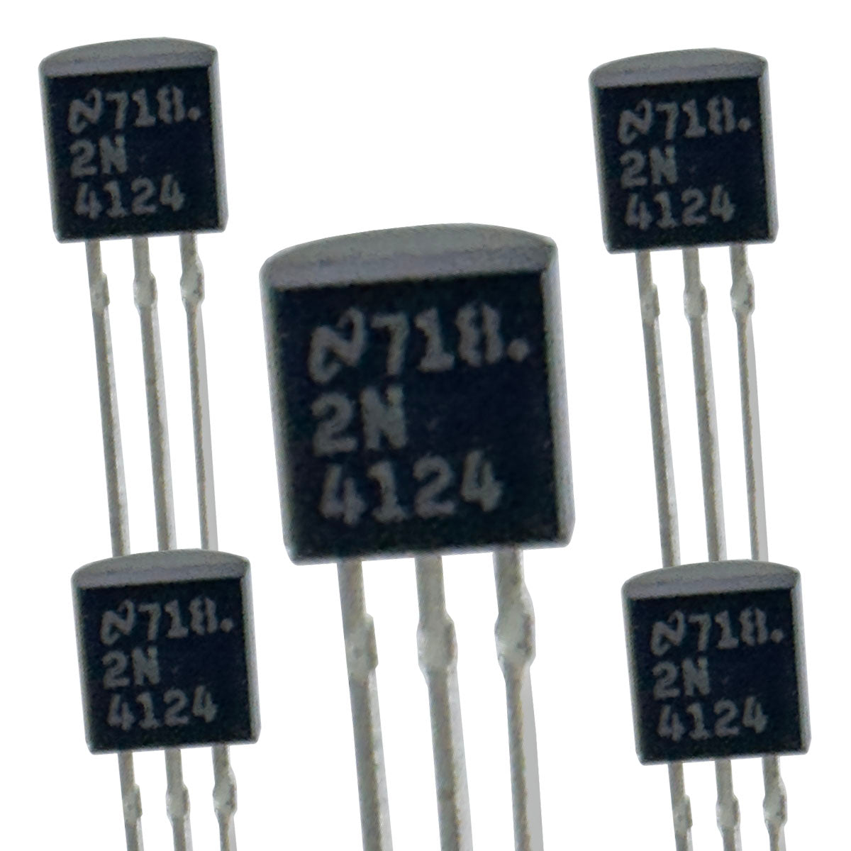 National 2N4124 is an NPN TO-92 transistor rated 25V 300MHz. Found in many guitar pedal circuits! Original Nationals part - New! Sold in a package of 6.