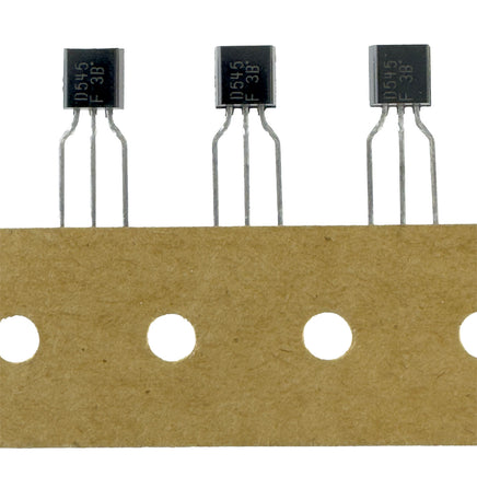 NPN transistor type 2SD545 is rated 25V 1A and 0.6W. Standard TO-92 thru-hole case. Sold in a package of 10.