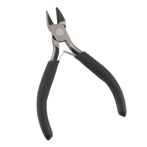 High quality, chrome-plated, side cutting small type pliers. Sharp cutting jaws with spring type insulated grips. Very handy for kit building and very good quality. Made in China. Size: 4" Long.