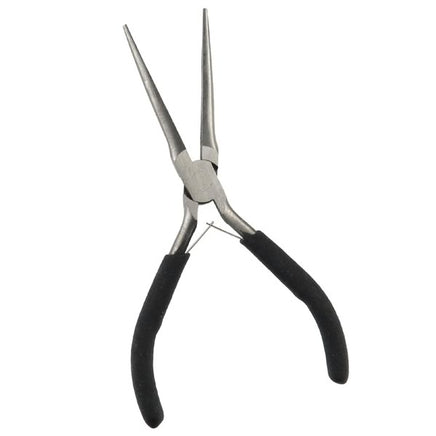 High quality, chrome-plated, needle nose miniature pliers for precision electronic work. Precision made with spring type insulated grips. Handy and precision made in China. Size: 5-7/8" long.