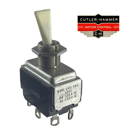 Stylish Cutler Hammer White paddle DPDT contacts (On-On) rated 6Amp 125VAC or 3Amp 250VAC. Mounts in a 0.5" dia. hole in panel with supplied nut. Brand new.