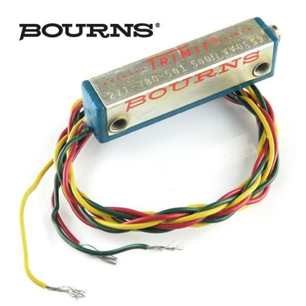 Bourns® 25-turn multi-turn linear taper 500 Ohm wirewound trimmer resistor by Bourns® Part# 271-780-501 has 2 mounting holes and 12" flexible color coded leads. Size 1.26" long X 0.28" X 0.33". Has adjustable slot on end. New old stock. Sold in a package of 5.
