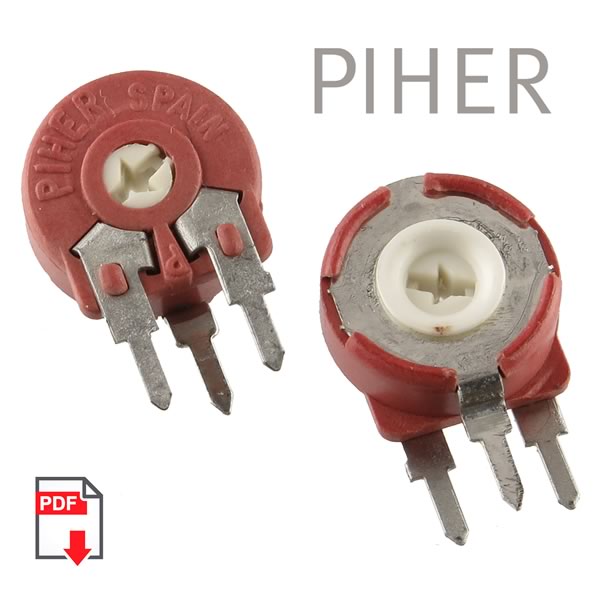 High quality Piher series PTC-10 25K Ohm 10mm vertical mount linear taper cermet trimmer potentiometer. Has 20% tolerance and a nominal power rating of 0.33W. Features 2.1mm screwdriver adjustment slot. Size is 10mm diameter x 4.6mm (excluding leads). Features 3 leads for PC board mounting. Sold in a package of 10.| Additional Resources |