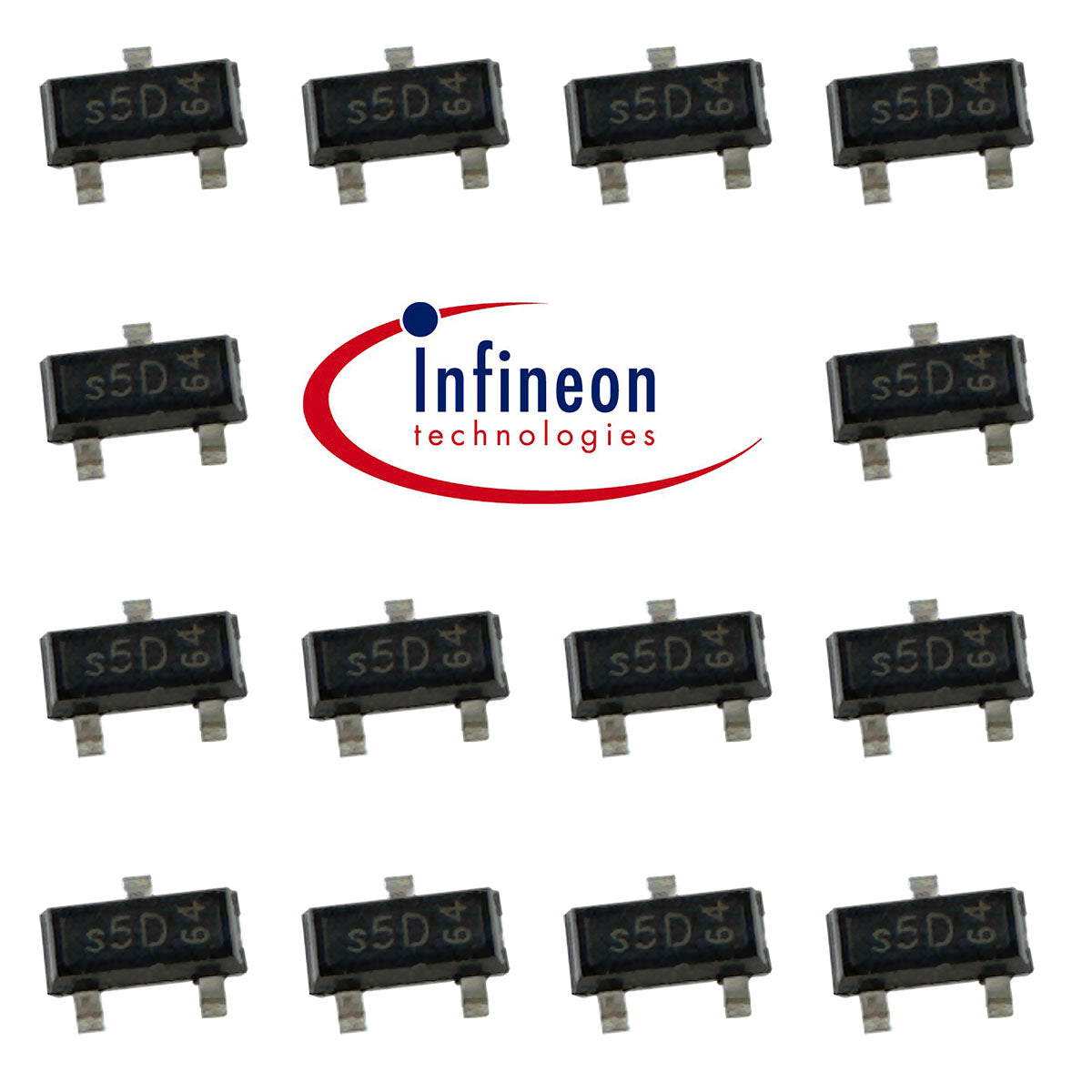 Infineon SMBD914 E6327 small signal switching diode is rated 100V 0.25A. Supplied in standard SMD SOT-23-3 case. Sold in a package of 20 on tape and reel.