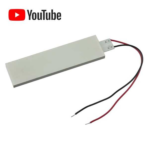 Bright yellow green backlight panel made for LCD displays is opaque white until 4.8 to 5VDC is applied. It then glows a bright even yellow green color. Has many internal SMD LEDs to achieve the "even" glow inside the sealed display case. Viewing area is 3.5" long x 0.937". Overall size is 4" long X 0.937" x 0.2" thick. Has two color coded leads for hookup.
