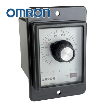 Omron 120VAC motor driven 0-180 minute fully adjustable time delay relay with SPDT contacts rated 1A, 220VAC. Features LED "on" indicator, adjustable time knob control, and standard 8-pin octal base. Brand new – old stock. Retails for up to $165.