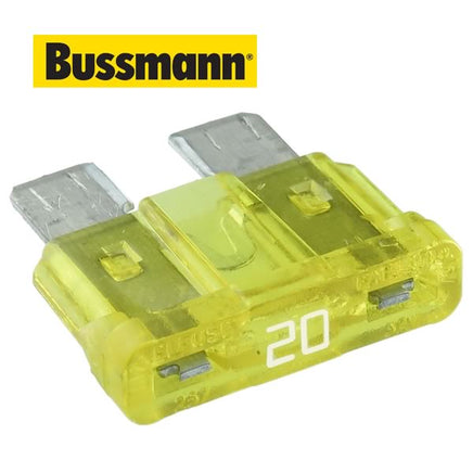 Small 20Amp blade fuse Bussman ATC or Littelfuse 257 equivalent for RV and Auto. Brand New! Sold in a package of 10.