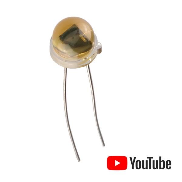 Large area Silicon Sensor features a 0.25" square silicon solar cell mounted in a pale yellow see-thru dome. Output at noon in full sunshine is open circuit voltage 0.55V and short circuit current is 2.5mA. Brand new with long leads. Sold in a package of 5.