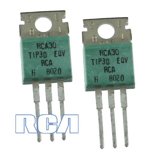 RCA TIP30 is a PNP silicon power transistor in a TO-220 case. Max VCBO = 60V, Max VI = 1Amp and fT = 3.0MHz. Original RCA Part - New! Sold in a package of 2.