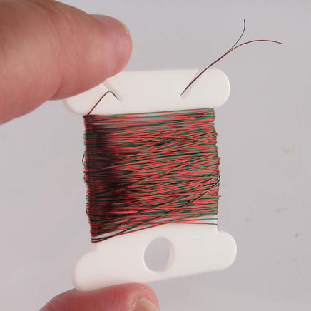 MWS high quality 36AWG red & green insulated pair magnet wire has enameled coating insulation on each wire. It is supplied on a 25ft reel and is perfect for use in bringing power to LEDs in model lighting, making custom coils, etc. Note: You must scrape enamel off ends of wire when soldering. Sold in an easy-to-use coil of 25ft length.