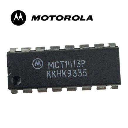 Motorola MC1413P features 7 high voltage, high current NPN Darlingtons in a 16 Pin thru-hole Dip package. Maximum ratings 50V and 500mA for any one Darlington. Original Motorola Part – New!