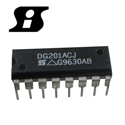 Siliconix DG201ACJ is a 4 channel analog switch IC in a 16 pin thru-hole Dip package.