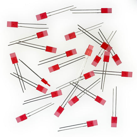 Everylight super bright diffused Red 1mm x 5mm rectangular LED lights up a brilliant Red when 2.1VDC @ 25mA is applied. Overall body is 5mm x 10mm long. Sold in a package of 25.